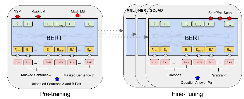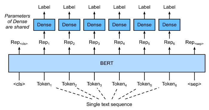 During fine-tuning, the minimal architecture changes required by BERT across different applications are the extra fully connected layers, during supervised learning of a downstream task application, parameters of extra layers are learned from scratch while all the parameters in the pretraining task are fine-tuned end-to-end. The below is fine-tuning BERT for sequence-level (single text classification, text pair classification) and token-level (text tagging, question and answering) application.
