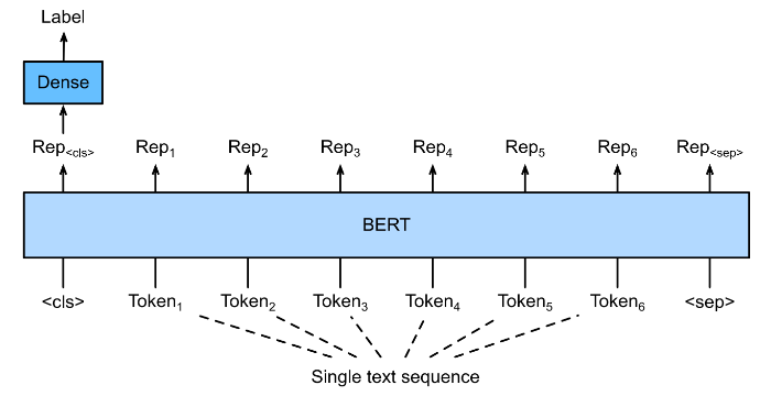 Single text classification takes a single text sequence as input and outputs its classification result. For instance, “I should study.” is acceptable (label 1) but “I should studying.” is not (label 0).